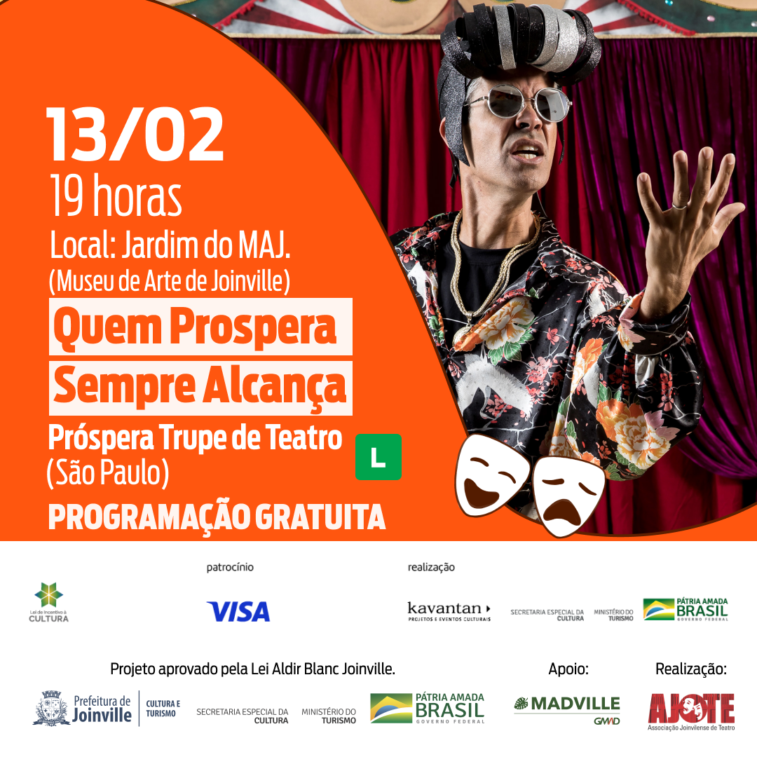 NOVA DATA: 05-03-2023 - DOMINGO - 20h Realizada com recursos do Prêmio Elisabete Anderle, a montagem é fruto de uma parceria entre a Metamorfose Cia Cênica e a Cia de Teatro Arte de Cá e conta com o apoio cultural da Escola de Música Tocando em Frente, de Itapoá/SC...