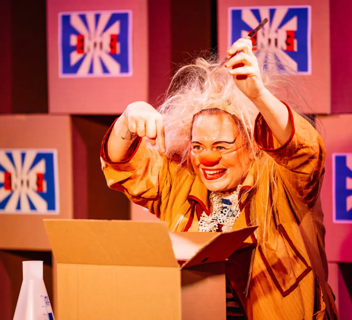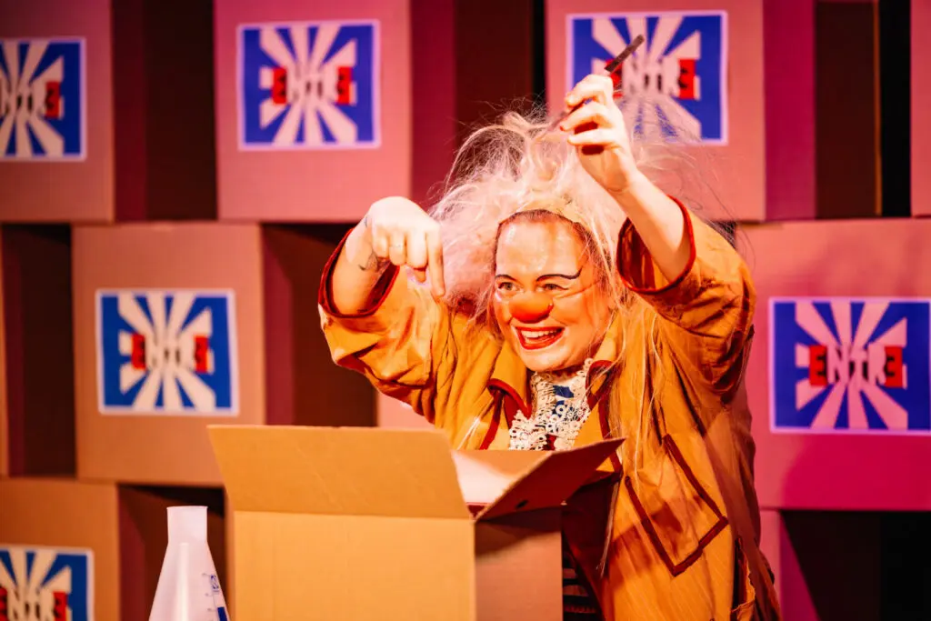 NOVA DATA: 28.02 às 20h Uma palhaça cientista começa seu primeiro dia na renomada Fábrica EntrƎ. Jaleco impecável, bancada esterilizada, prancheta em mãos: tudo parece estar em seu devido lugar. Ela está pronta para seguir as regras, cumprir metas e alcançar altos níveis de excelência. Em meio à fábrica, parece que cada gesto humano tem um padrão invisível a ser seguido. Mas algo estranho acontece quando a produção começa...