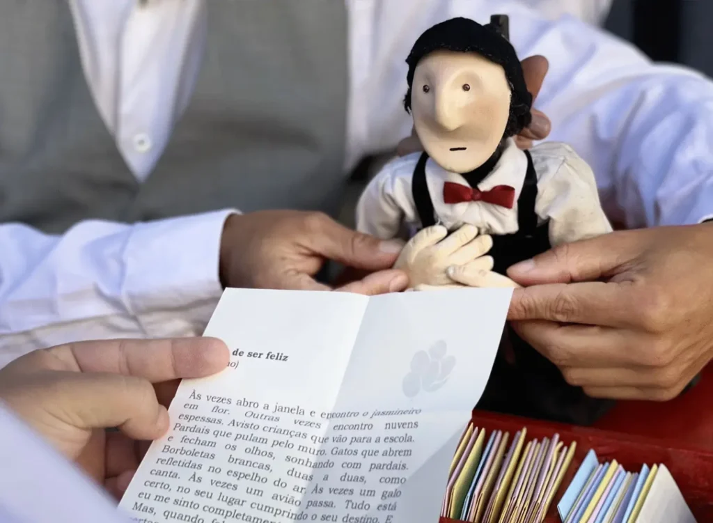 NOVA DATA: 18 e 19.08.2025 20h e 15h Delicados dedinhos escolhem coloridos papeizinhos… Notas musicais misturam-se a frases que dizem algo mais… O que é que vem chegando e a todos encantando?