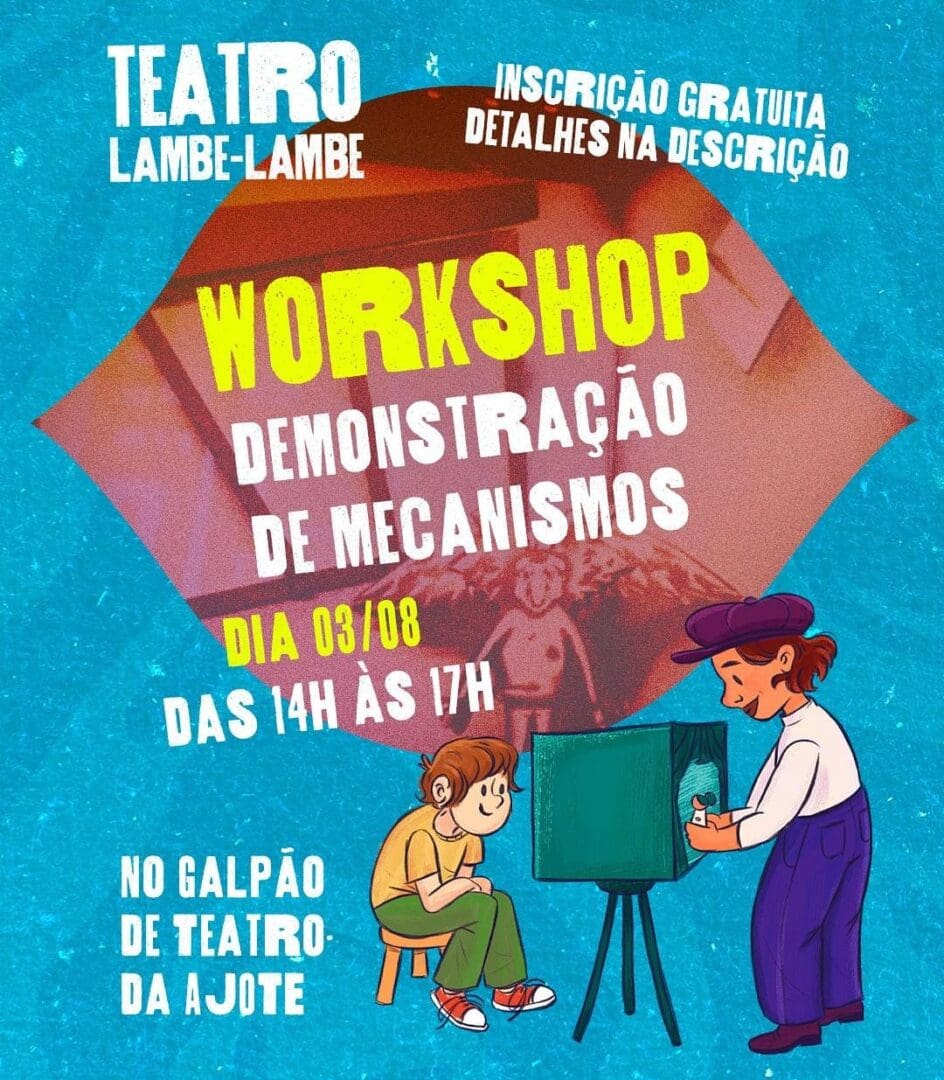 NOVA DATA: 02.08.2025 das 9h às 12h e das 13h30 às 18h30 Voltada a estudantes, artistas visuais e pessoas interessadas em criação teatral, a oficina oferece uma introdução prática e reflexiva à cenografia cênica. Serão abordados temas como espaço, luz, cor, tempo, símbolo e suas relações com o corpo, o texto e a direção...